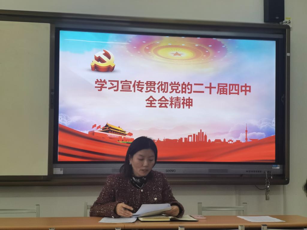 11月12日,教务科研党支部在博学楼309室召开党的二十届四中全会精神学习专题会议,会议由支部书记白娟娟主持,支部全体在校党员参加。